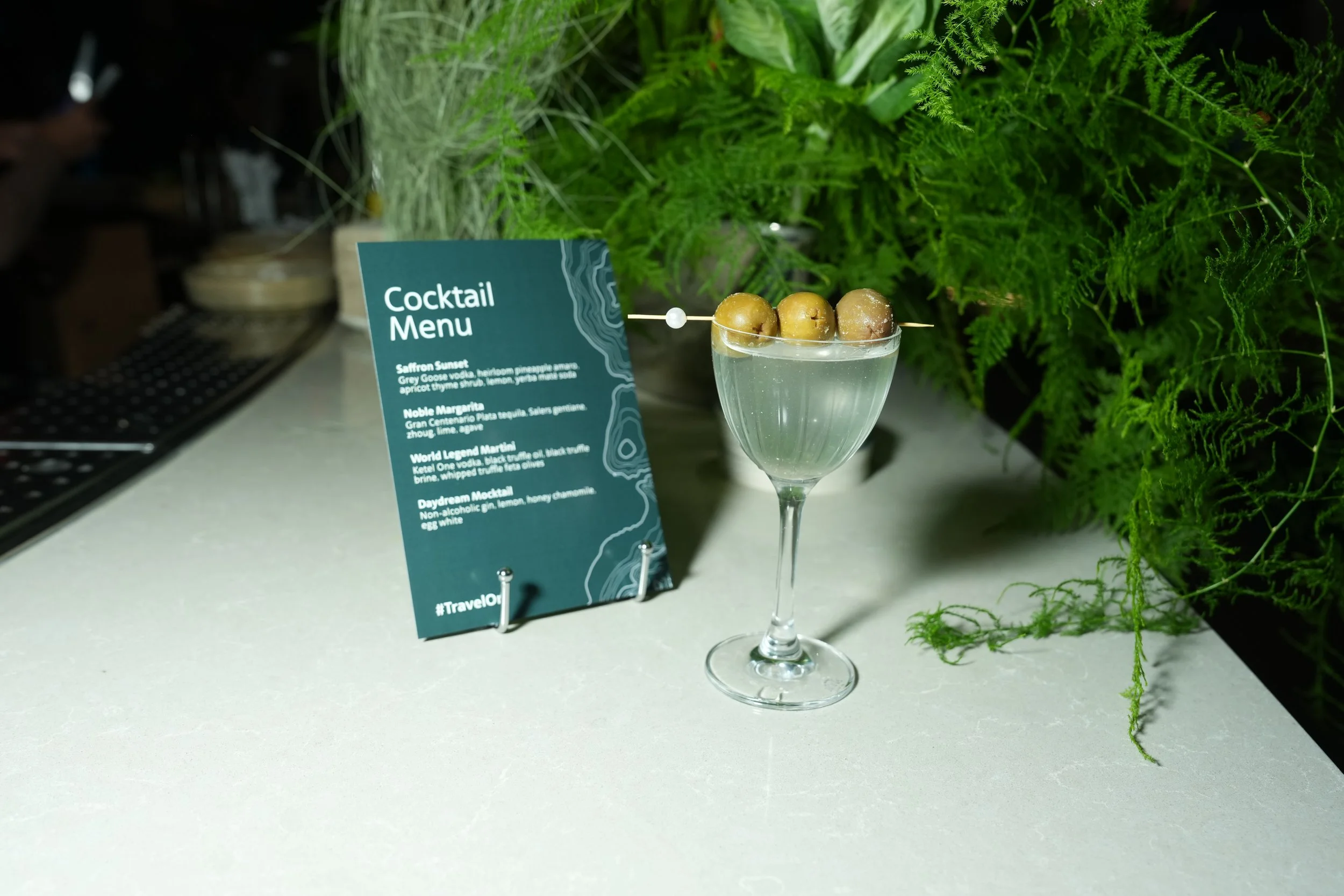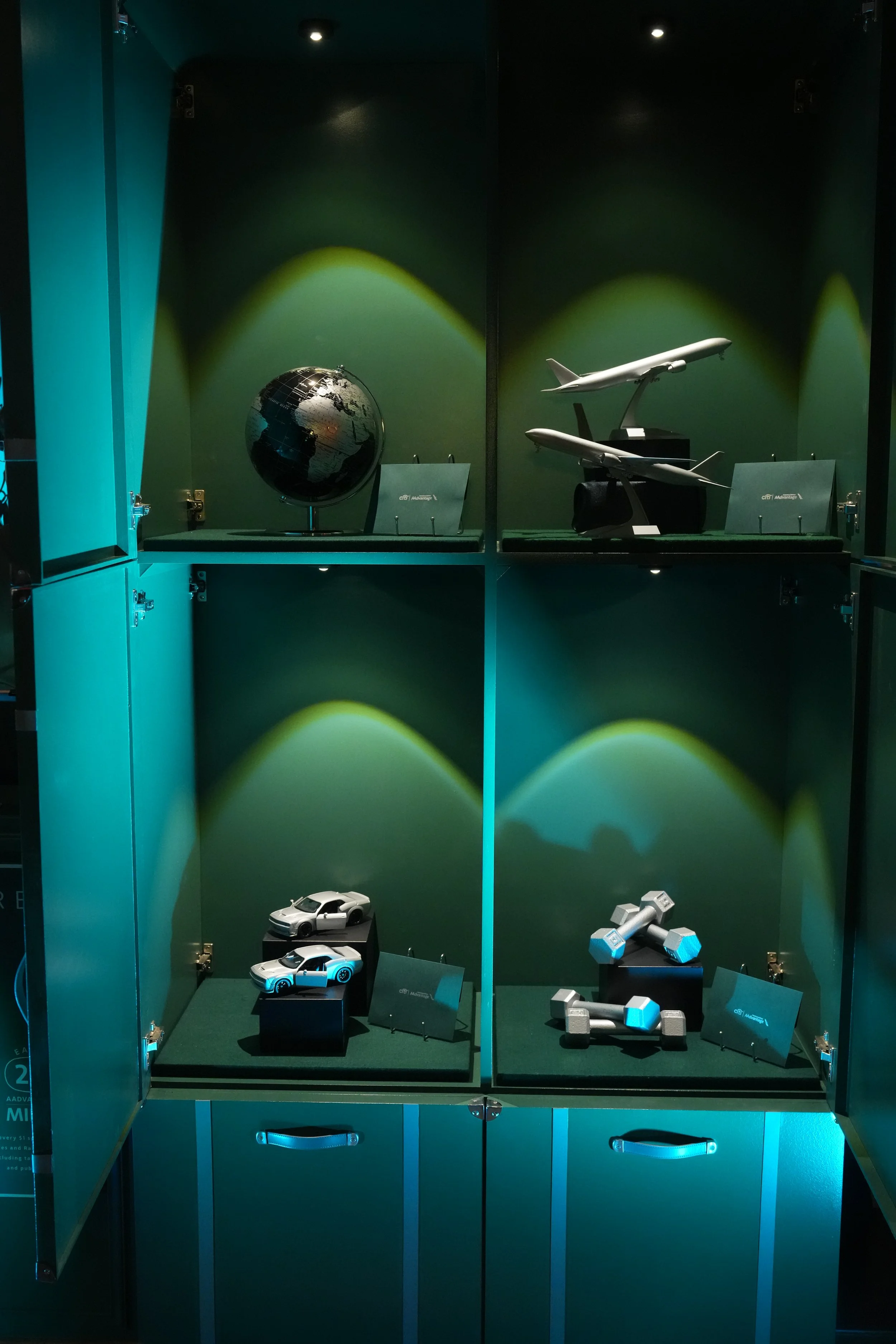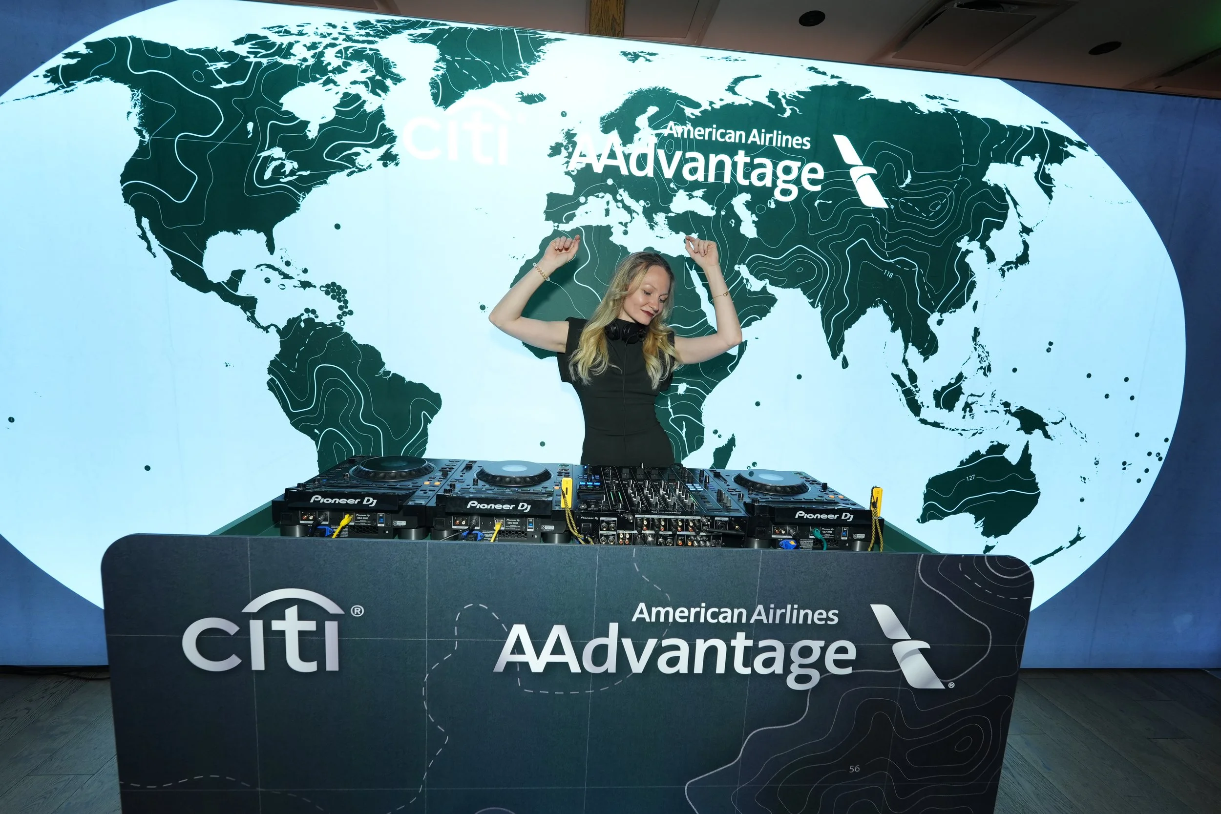 INSIDE, THE NIGHT UNFOLDED AS A SERIES OF INTERACTIVE MOMENTS, EACH TIED DIRECTLY TO A CARD BENEFIT. A GLOWING ELEVATOR INSTALLATION TRANSPORTED GUESTS TO DREAM DESTINATIONS FOR SHAREABLE PHOTO MOMENTS, A CURATED LUGGAGE WALL INVITED THEM TO OPEN PREMIUM REWARDS, AND AN ADMIRALS CLUB–INSPIRED COCKTAIL BAR SHOWCASED THE RICHNESS OF GLOBE CARD TRAVEL PERKS. EVERY DETAIL, FROM MUSIC TO HOSPITALITY TO PROP STYLING, REINFORCED THE FEELING OF STEPPING INTO A WORLD DESIGNED FOR THE PURPOSEFUL TRAVELER.