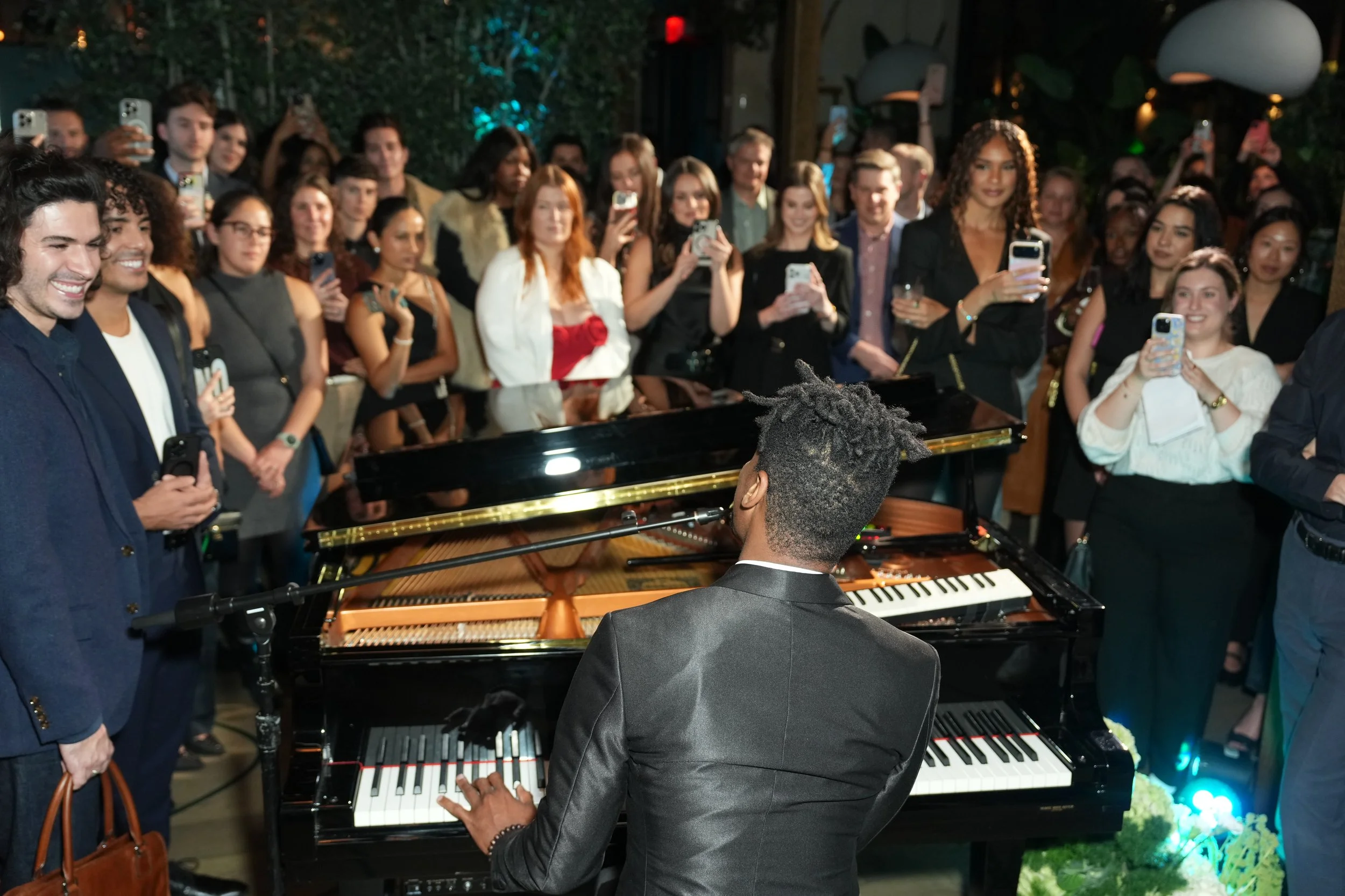 JUST AS THE ROOM REACHED ITS PEAK ENERGY, GUESTS WERE TREATED TO A SURPRISE LIVE PERFORMANCE BY JON BATISTE, TRANSFORMING THE LAUNCH INTO A CULTURAL MOMENT AND ELEVATING THE EXPERIENCE FROM PREMIUM TO UNFORGETTABLE. THE JOURNEY CONCLUDED WITH A PERSONALIZED WEEKENDER BAG, MONOGRAMMED ONSITE AND FILLED WITH GUESTS’ COLLECTED REWARDS — A TANGIBLE SYMBOL OF THE EXPERIENCE AND A TAKE-HOME REMINDER OF GLOBE’S PROMISE. IN ONE EVENING, SOHO TURNED A PRODUCT LAUNCH INTO A narrative OF UNLOCKED ADVENTURES, MAKING THE GLOBE CARD FEEL NOT JUST NEW, BUT NECESSARY.